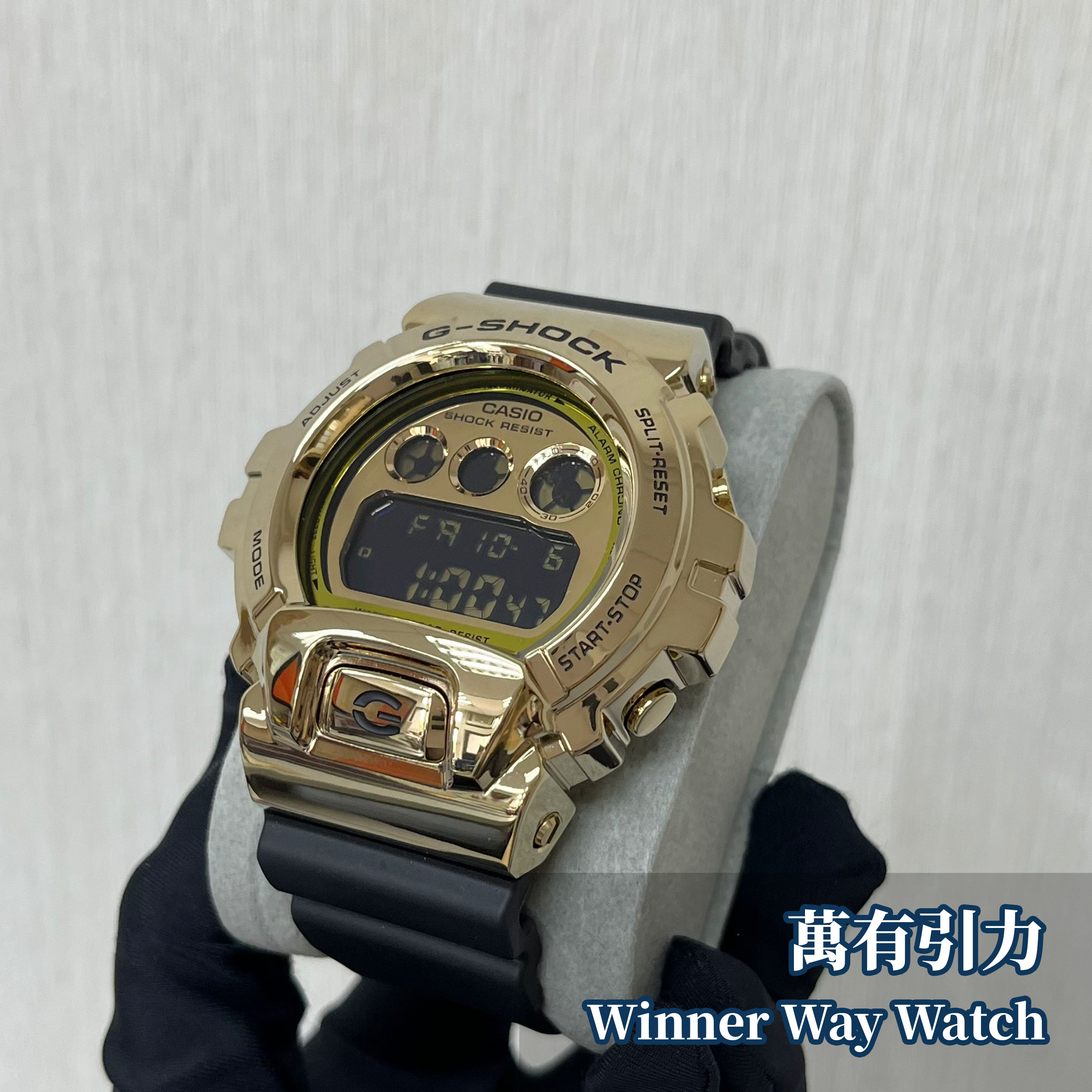 手錶資料:錶殼尺寸(長 × 闊 × 高):53.9 × 49.7 × 18.6 mm重量:96 g不鏽鋼錶殼、樹脂錶帶、礦物玻璃、金色離子鍍錶圈防震、200 米防水大約電池壽命:CR2016 為 2 年秒錶、鬧鐘EL:藍綠色日曆:全自動日曆(至 2099 年)準確度:每個月 ±15 秒12/24 小時制