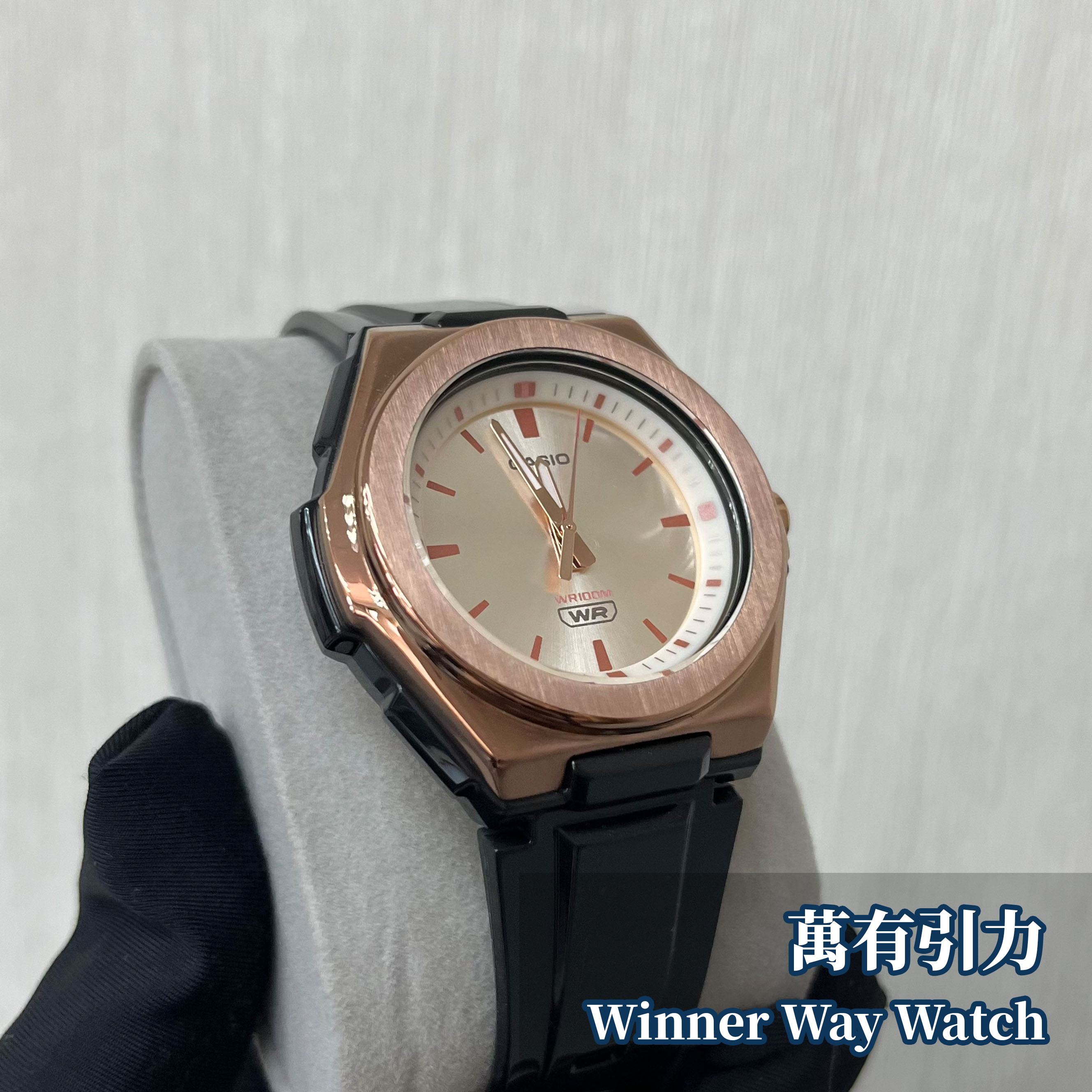 手錶資料:錶殼尺寸(長 × 闊 × 高):42.6 × 42 × 11.4 mm重量:34 g不鏽鋼、樹脂玻璃、玫瑰金離子鍍邊框100米防水大約電池壽命:R626SW 為 3 年準確度:每個月 ±20 秒
